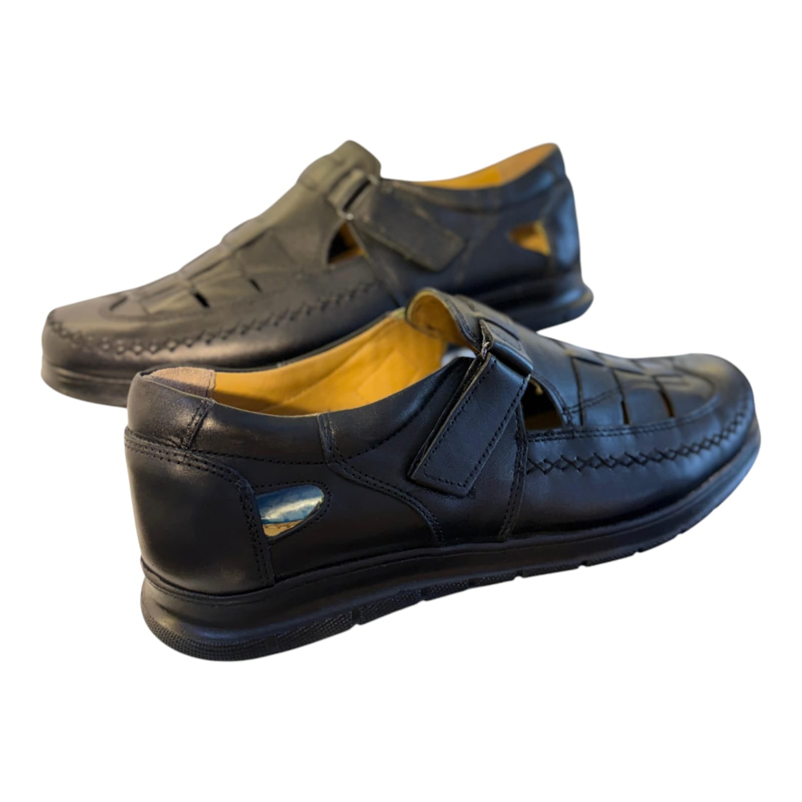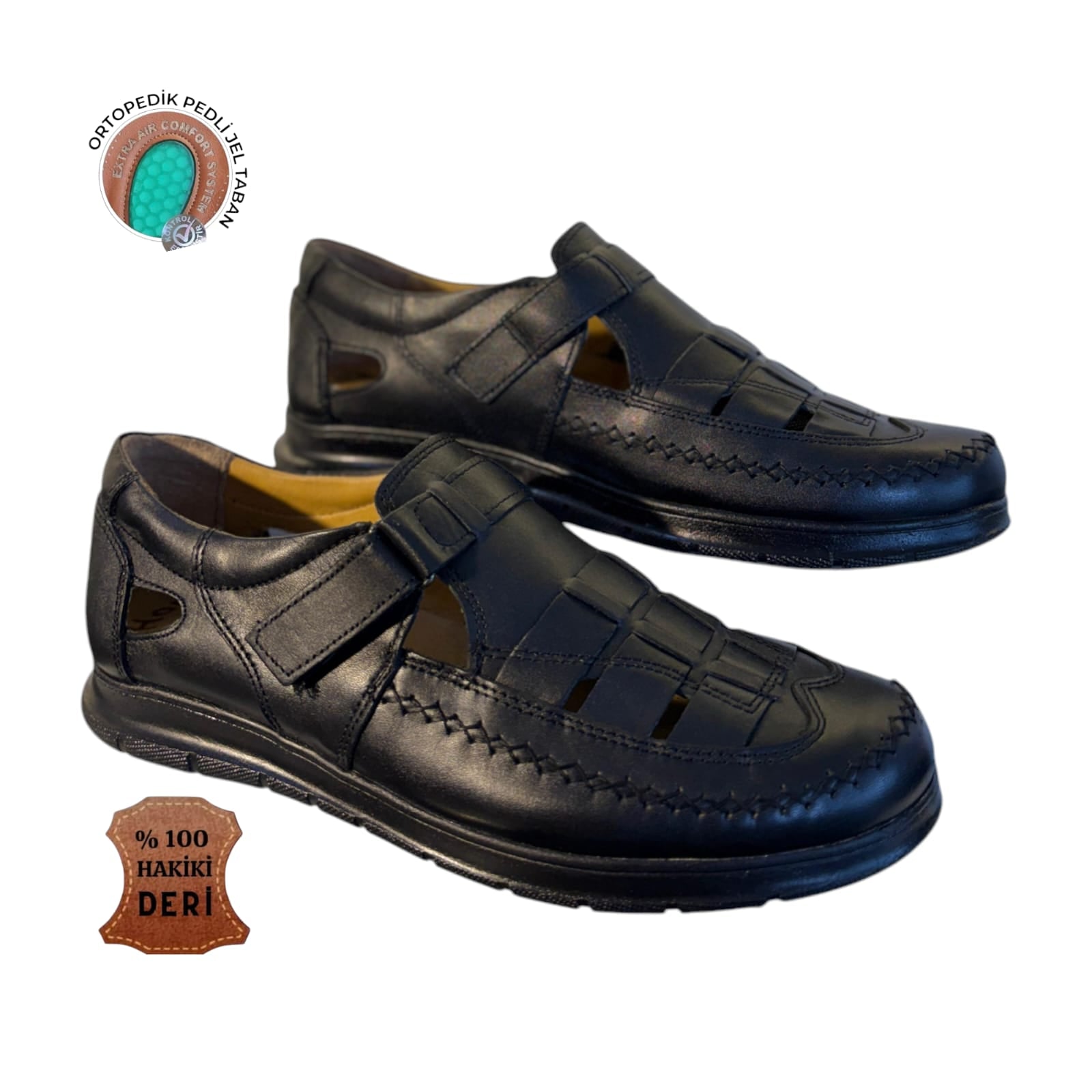ComfortStep Erkek Hakiki Deri Sandalet – Ortopedik Jel Tabanlı, İç Dış Deri, Polirüretan Taban, Cırtlı, Rahat Yazlık Günlük Ayakkabı
