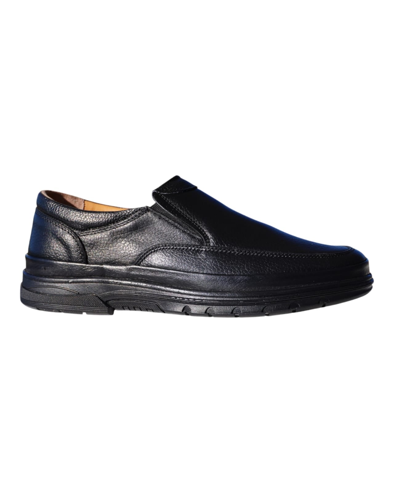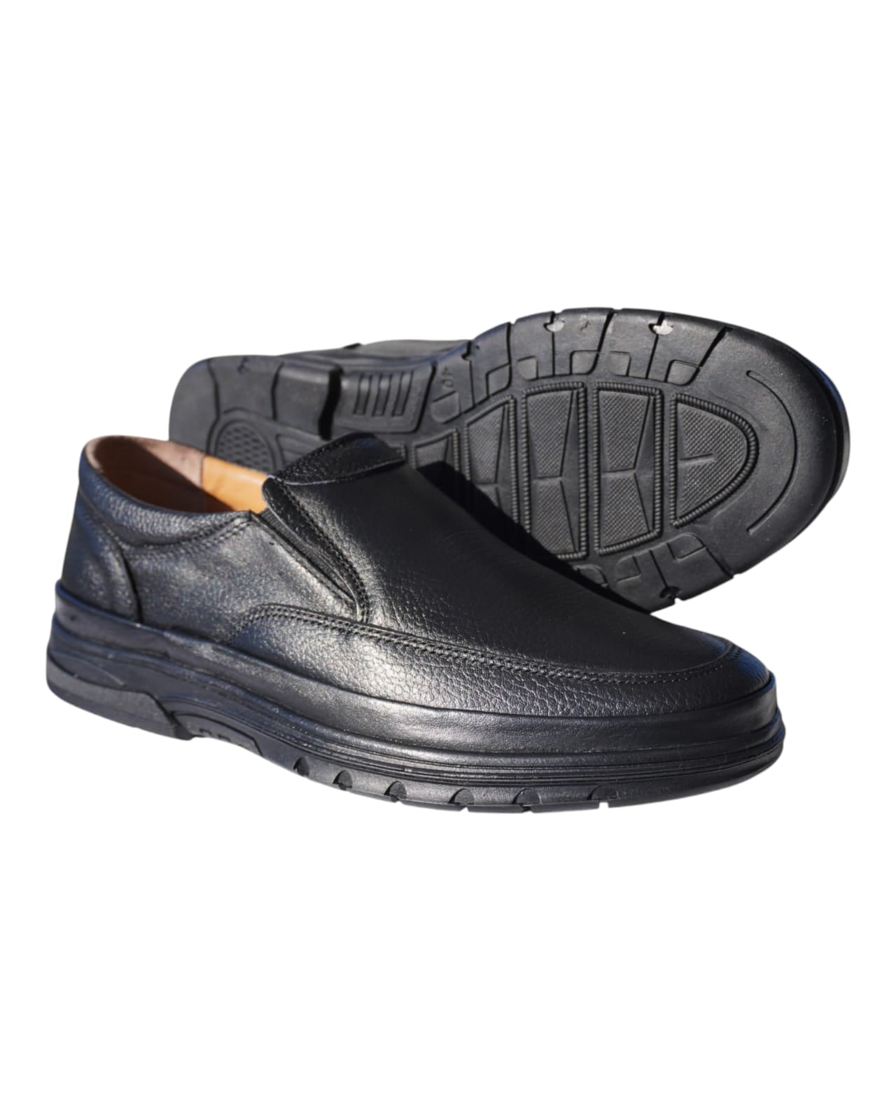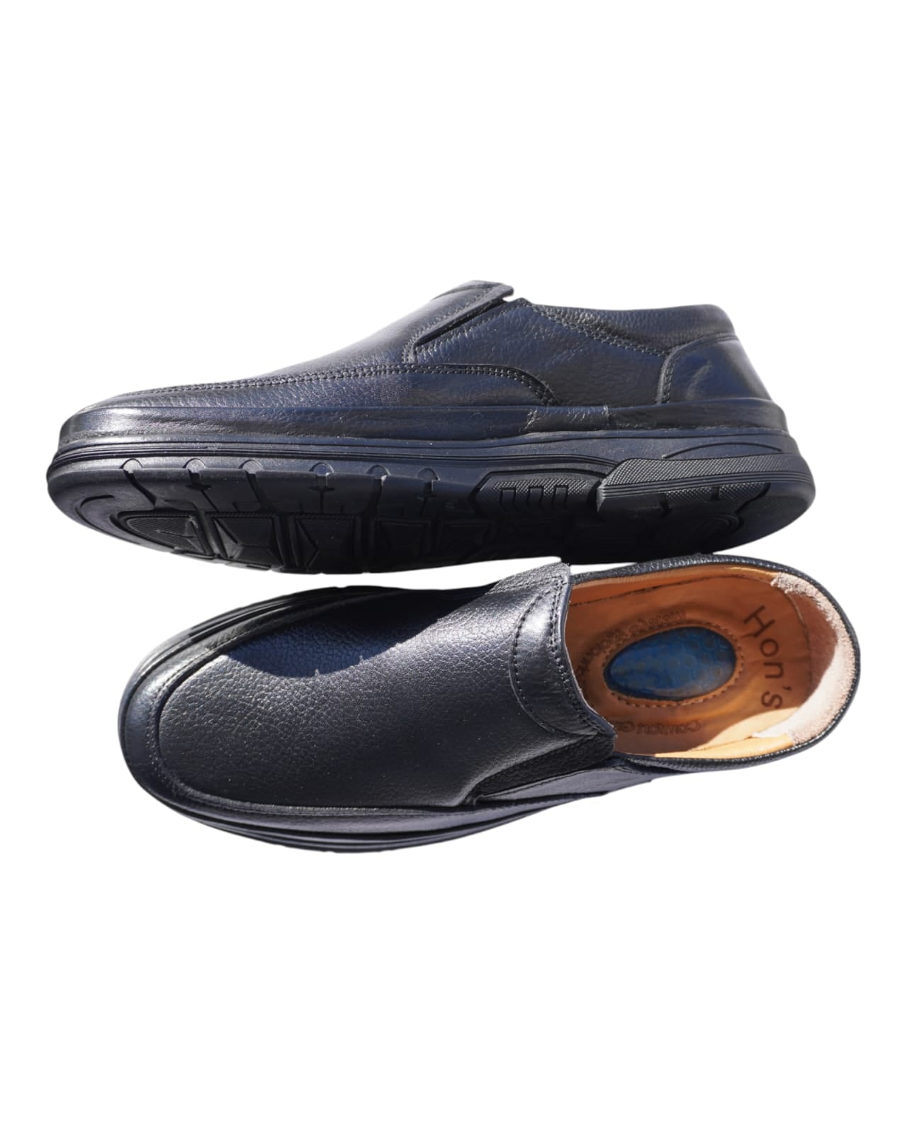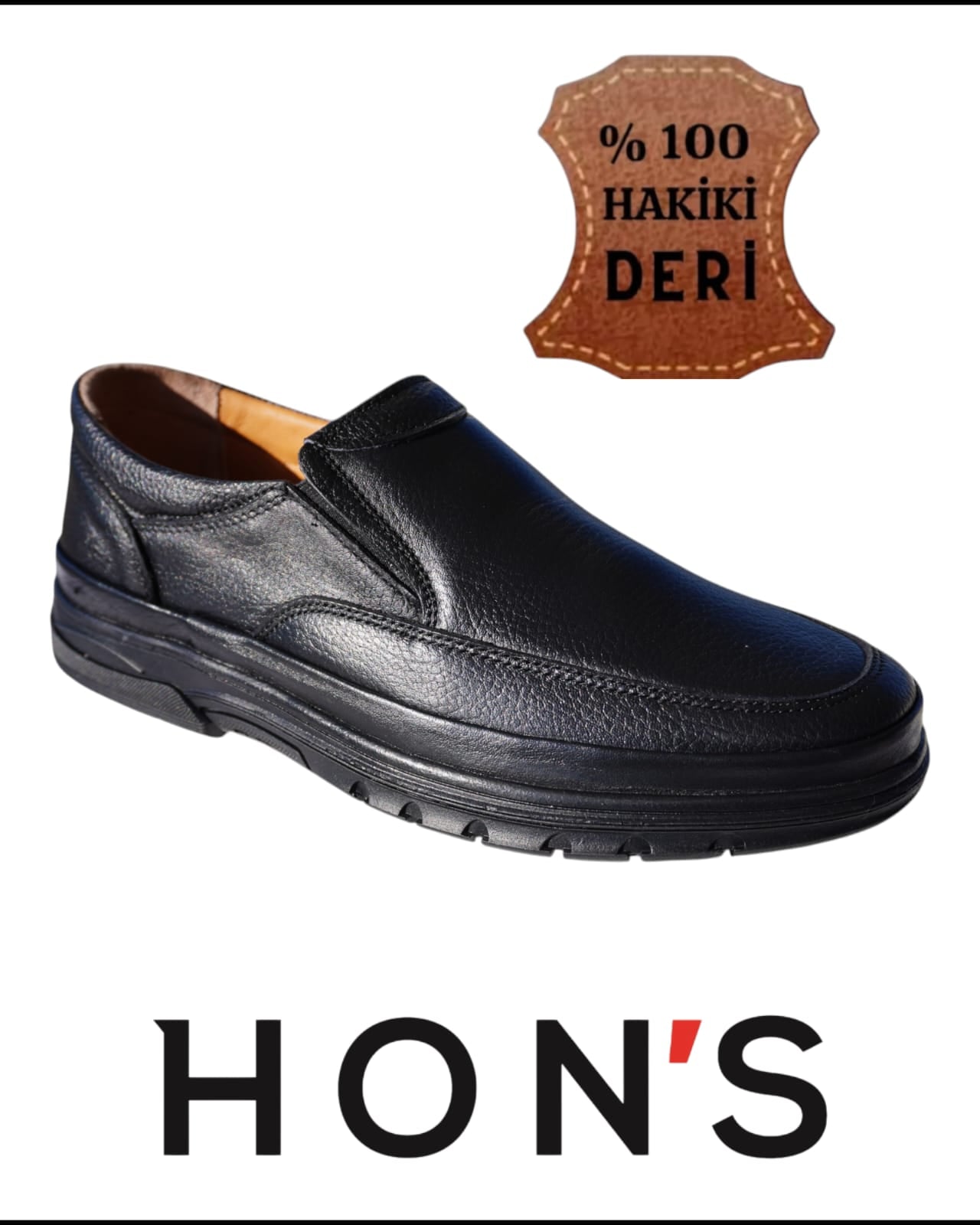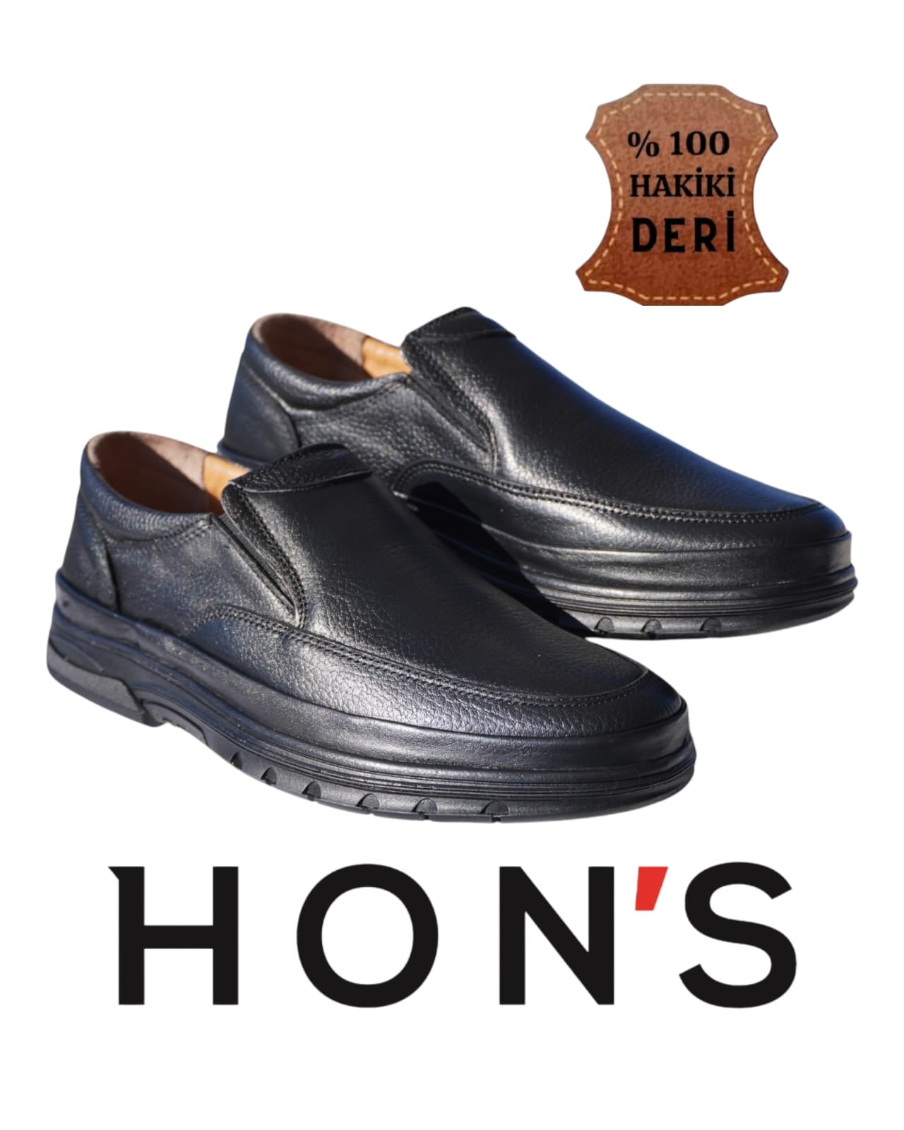 HON'S Siyah Erkek Ayakkabı Hakiki Deri Bağcıksız Kauçuk Taban Topuk-jelli-ortopedik-tabanlık 40/47 Hsa001