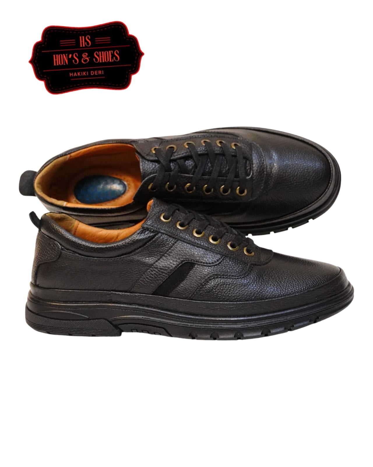 HON'S Siyah Erkek Deri Ayakkabı Hakiki Deri Bagcıklı Ortopedik Jelli Tabanlıklı HSA002