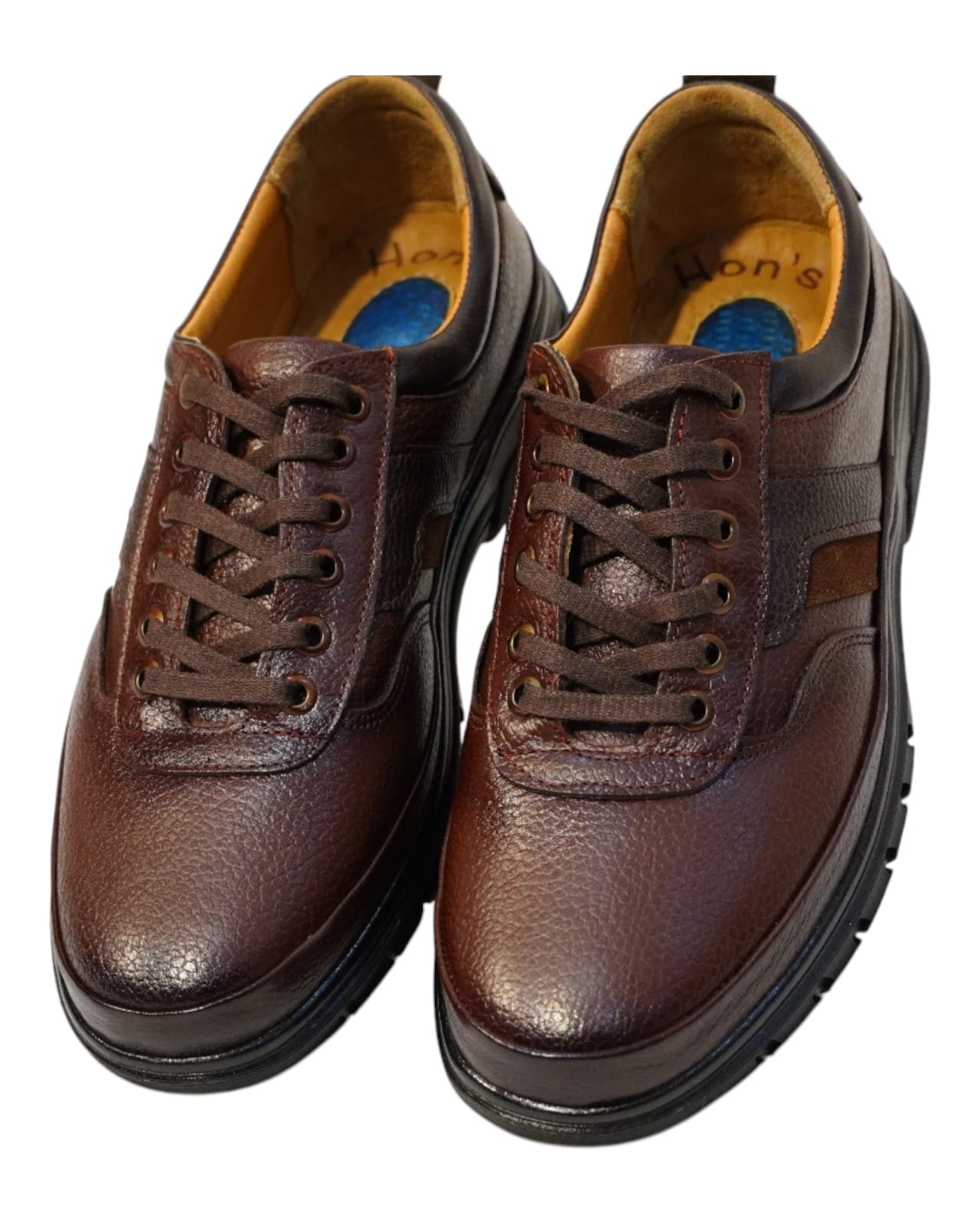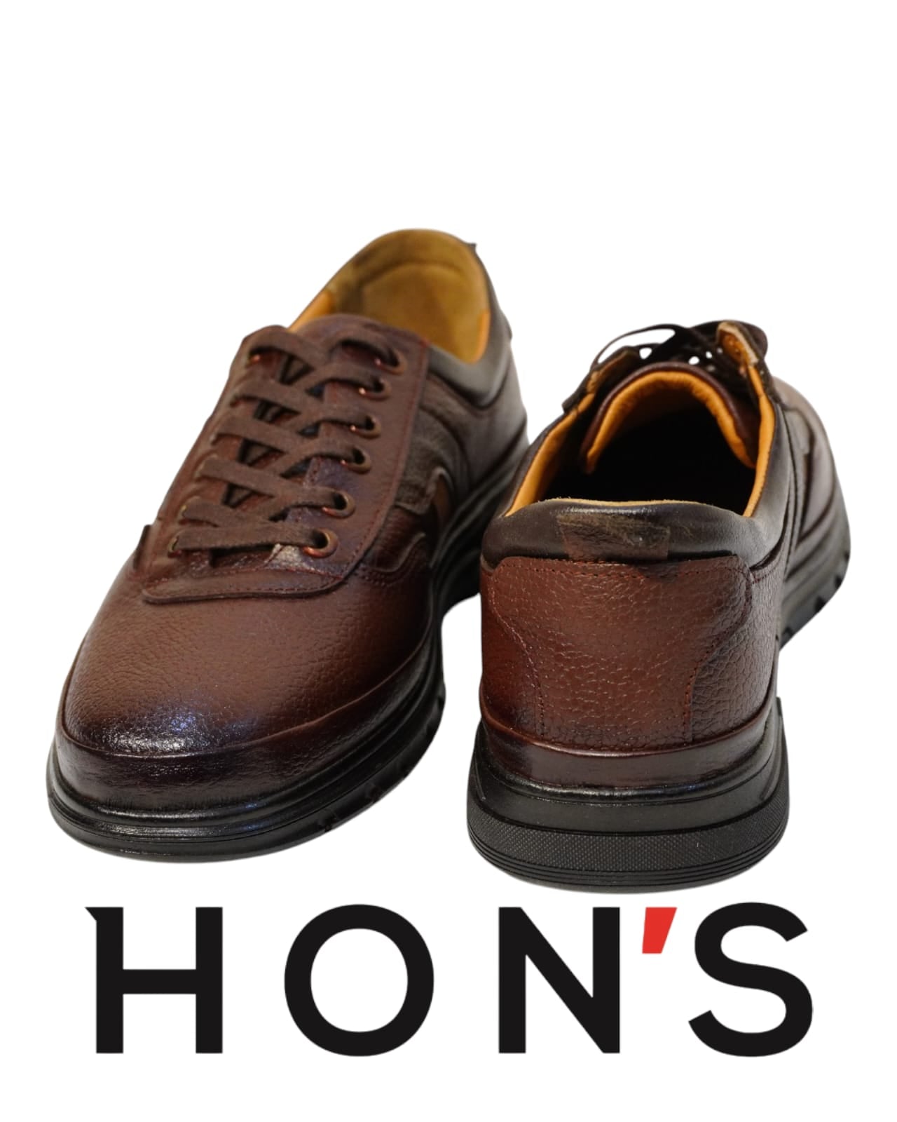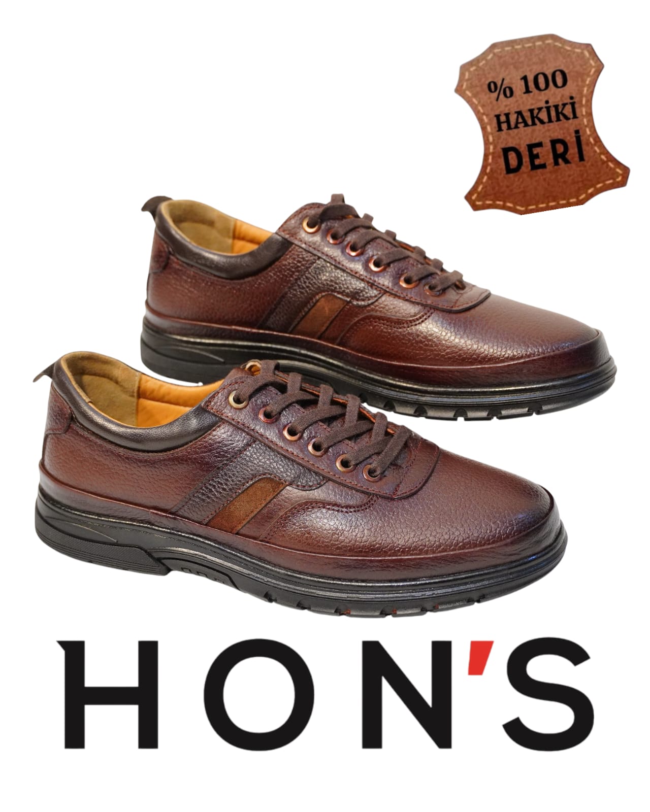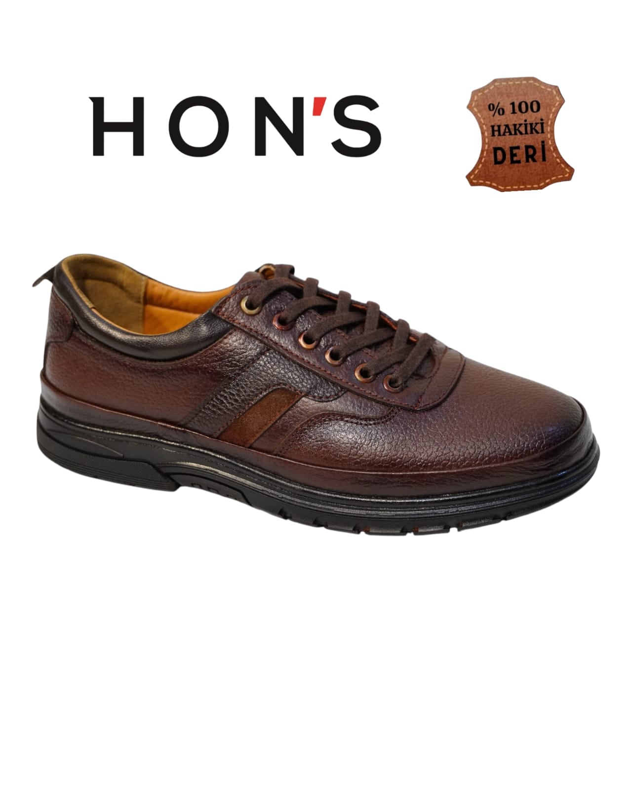 HON'S Kahverengi Erkek Deri Ayakkabı Hakiki Deri Bagcıklı Ortopedik Jelli Tabanlıklı HSA002